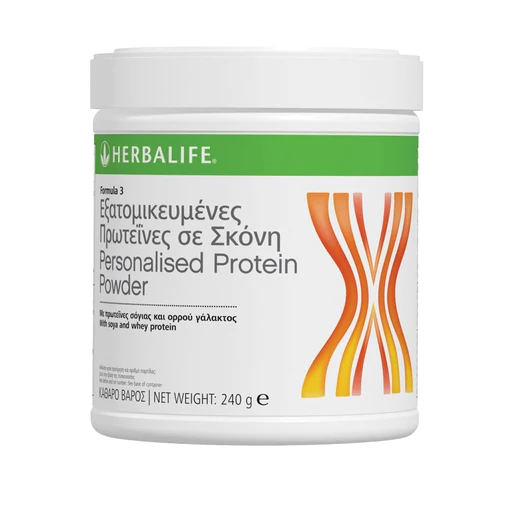 Herbalife Formula 3 Εξατομικευμένες Πρωτεΐνες σε Σκόνη. Ένα ιδιαίτερο Πρωτεϊνούχο Συμπλήρωμα Διατροφής για τον εμπλουτισμό με πρωτεΐνη κάθε γεύματος φτωχού σε αυτό το συστατικό διατροφής. Επί παραδείγματι. 2 κουταλιές Herbalife Formula 3 Εξατομικευμένες Πρωτεΐνες σε Σκόνη, μεταμορφώνει μια κοινή σαλάτα μαρούλι-ρόκα σε μια σαλάτα με 10gr πρωτεΐνης. Τί πιο απλό, τί πιο μαγικό!